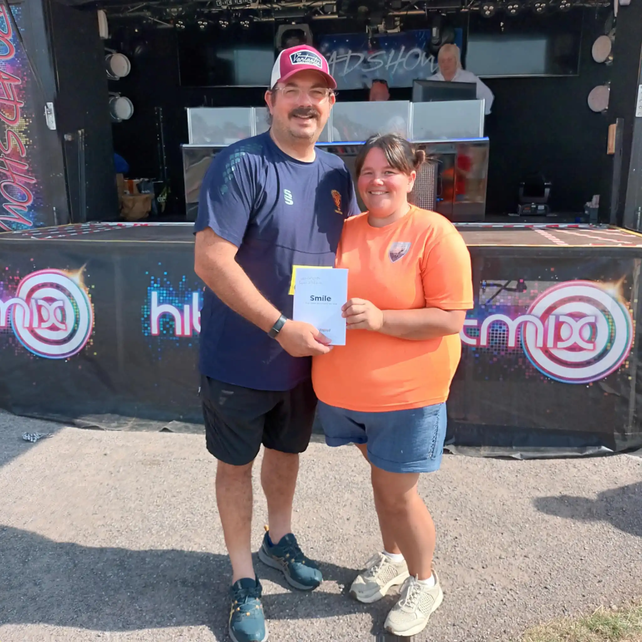 The sun shone on us again and the local community turned out in their hundreds to support the event and help us to raise money for Dan’s memorial fund. As well as our normal attractions of Bouncy castles, children’s play area, the Hitmix Roadshow and a BBQ etc we were joined by a fire engine from the Staffordshire Fire and rescue service. We also had the local 6th form college, members of the Staffordshire moorlands motor cross club with a few of their motorbikes, and an area where people could try their hands at Jedi warier training. The cricket went on throughout the day with the hosts Audley running out eventual winners. We also had raffles and auctions going on with a main prize of £1,000 worth of travel vouchers which was won by Laurence Gibson, pictured with Dan’s sister Kim.