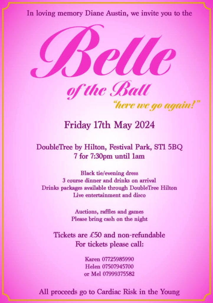 This year the ball, taking place at Double Tree by Hilton, festival park on Friday 17th May will raise funds for Cardiac Risk in the young (CRY) a cause that holds special significance due to Diane’s involvement in promoting CPR education in high school across Stoke on Trent. Diane was instrumental in developing and delivering CPR sessions in schools across Stoke on Trent and worked with the team at Good morning Britain to help distribute mannequins to year 7 pupils. We have linked this year’s fundraiser to CRY as her main line of work was working with children and young people. Tickets for the event are still available at £50, includes a three course dinner, welcome drink on arrival, live entertainment and a disco, there will also be lots of raffle and auction prizes on the night to raise further funds. Tickets are available for purchase by contacting Karen on 0772598590 or by emailing Jacob on jacob@trenthamfoods.co.uk