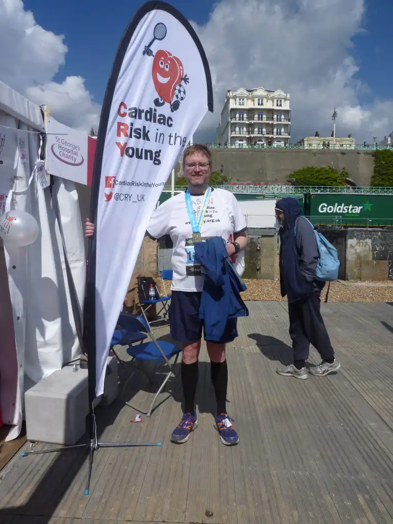 CRY had a stand at the event for the third year in a row. The runners who visited the stand after finishing were given a warm welcome and refreshments by CRY staff Rosie Peploe and Phil Houlton, and CRY volunteer Hollie Peploe. Jason Mitchell was the first CRY runner to arrive at the meet-and-greet point with an amazing finishing time of 03:59:29.