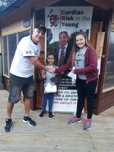 This is a photo of Rory’s dad Chris with 7 year old Megan Charlesworth and 11 year old Holly Charlesworth. Their Grandma, Margaret Lowe gave them £150.00 each to donate to a charity of their choice. They very kindly chose Rory’s Foundation at CRY. We are so grateful for their generosity which will allow 6 young people to