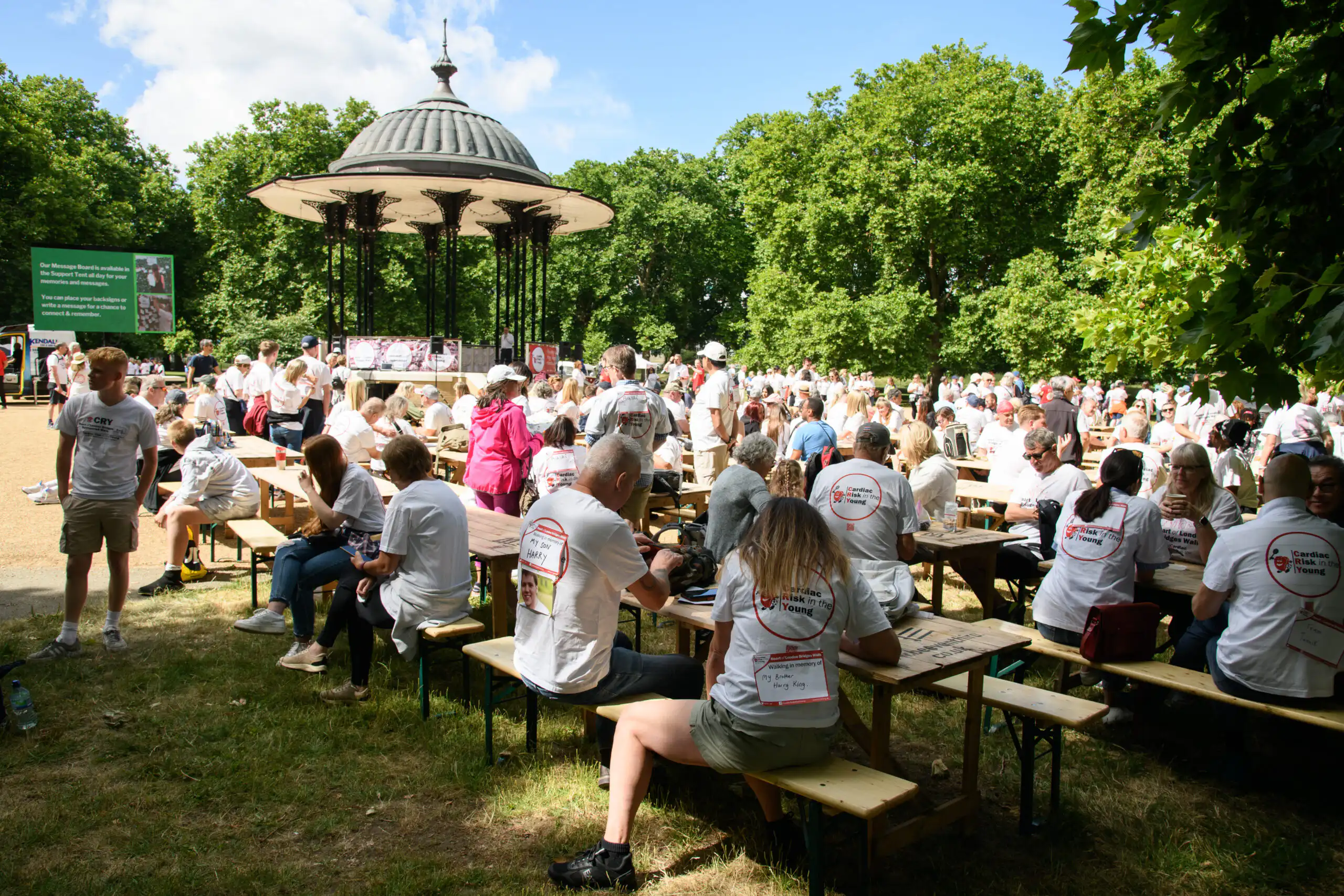 For the first time in 2019, we moved the Heart of London Bridges Walk to a new starting venue at Southwark Park and returned again this year. Walkers began arriving in the park from 9am and gathered around the band stand, connected with other participants, and uploaded their messages and photos to our message wall screen. A total of 709 walkers came to take part.