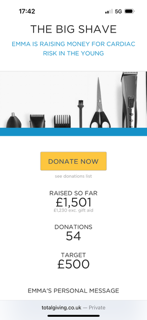 I was able to do my shave last week (9/8/25) and so proud to have raised £1500.
