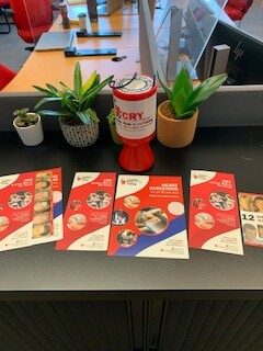 Nathans’s parents Angela & Phil provided lots of flyers, posters, collection tins, badges, stickers, posters & T-shirts….WOW! which were shared around the site to spread awareness about CRY and all their good work.