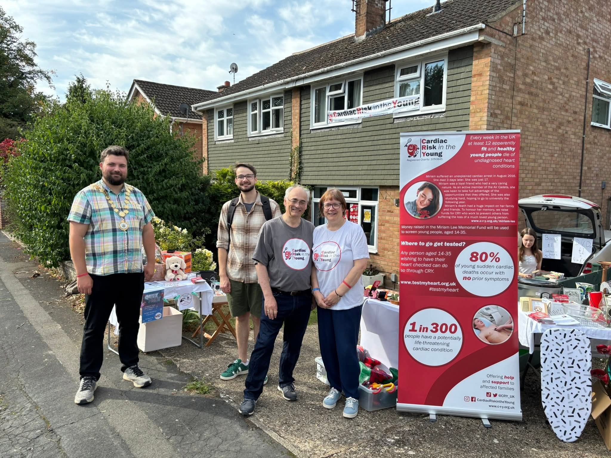 7th September 2025 saw The Ise Lodge Estate, Kettering, Northants hold a garage sale. The organisers kindly chose the Miriam Lee Memorial fund for CRY as their charity to support. Over 100 houses took part. The Lee household held a raffle, sold items and spoke to many visitors about the important work of CRY. The Mayor & other local councilors were very supportive too. In total we raised a massive £1,078. Nicola was able to apply to The Morrisons Foundation for match funding and received a staggering £2,000. We are so grateful for the support of so many people to help us fund a testing weekend in a local school to benefit our local community.