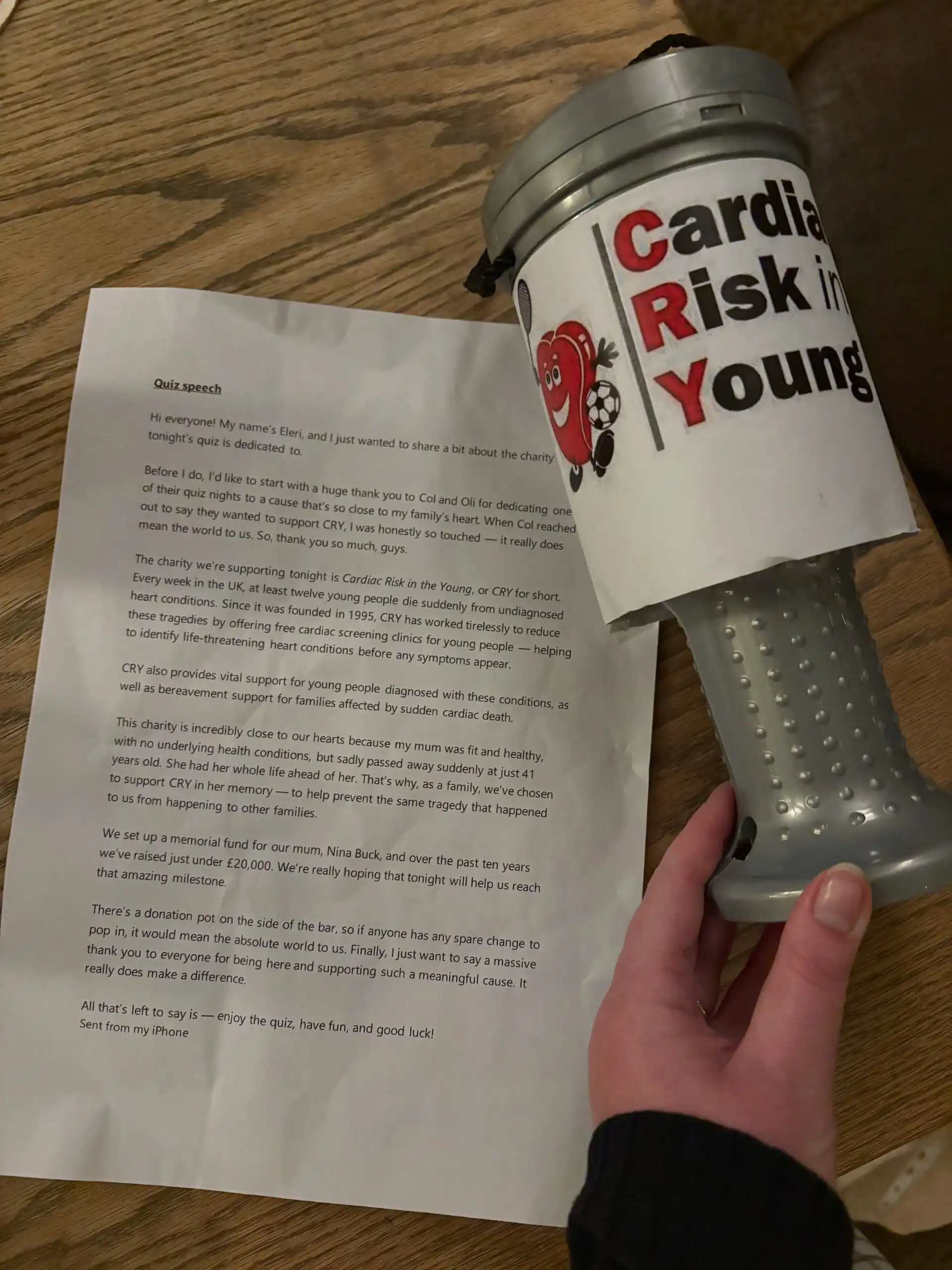 The evening brought together family, friends, and supporters for a fun and engaging night of trivia, all in honour of Nina. Thanks to everyone’s kindness and generosity, we’re delighted to share that the event raised £220 for CRY.