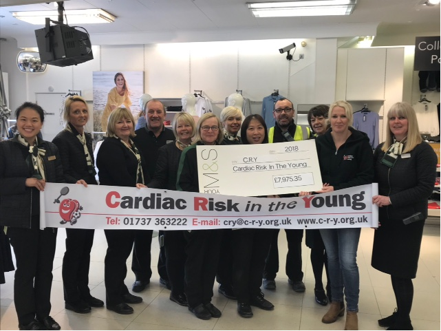 Donna Fell collected a cheque in memory of James Moorfoot – the total amount includes matching funds of £1500 and a £1000 donation from carrier bag sales. We are now well underway in raising the £5000 needed to pay for our heart screening day in October – the local community are really getting behind the cause!