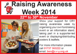 The third CRY Great Cake Bake took place on Friday 28th November 2014, as part of Raising Awareness Week. We would like to thank everybody who took part in the CRY Great Cake Bake and for helping to make the event such a success. Money is still coming in but we are delighted to say that